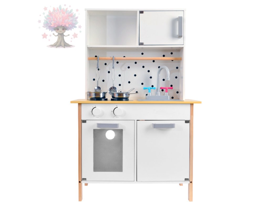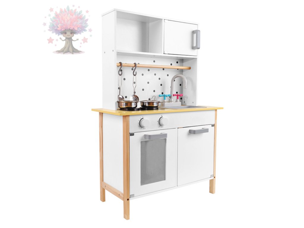 Tato dřevěná kuchyňka je skvělým tipem na dárek pro děti. Podporuje kreativitu, rozvoj sociálních dovedností a umožňuje dětem napodobovat dospělé při vaření.
