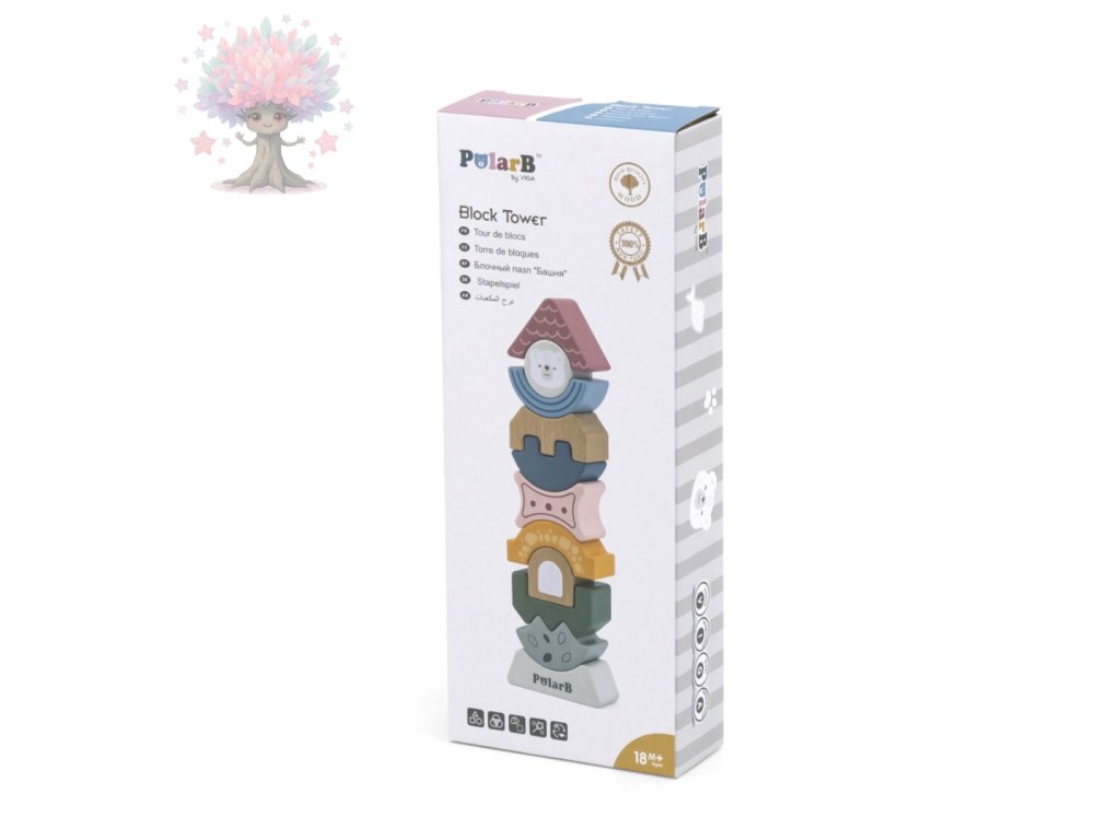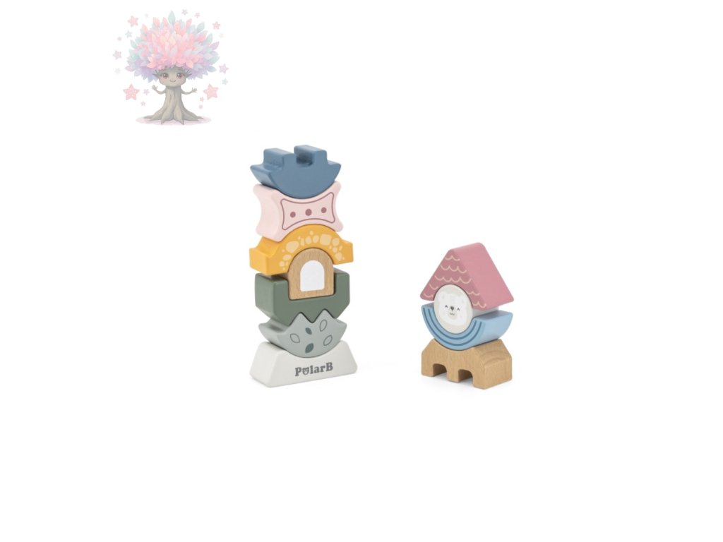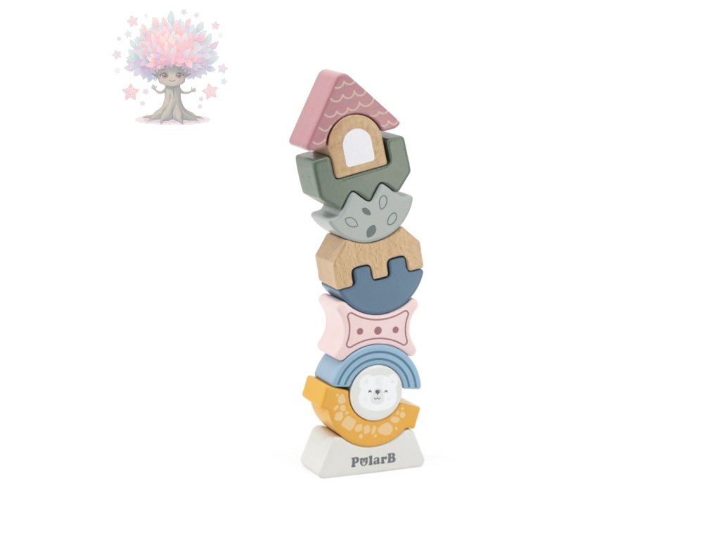 Tato dřevěná skládací věž PolarB v krásném pastelovém provedení přináší dětem nekonečné možnosti hraní a učení. Jednotlivé dílky v různých tvarech a barvách lze libovolně skládat, otáčet a kombinovat – výsledkem je originální věž nebo vtipná postavička.