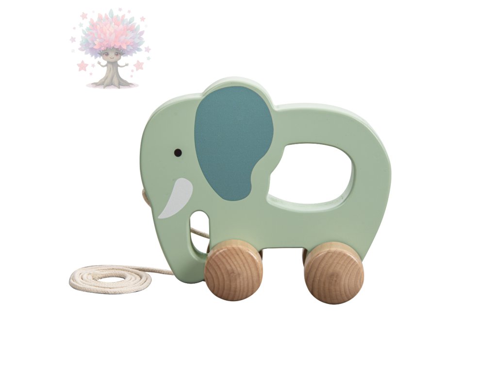 tahací slon na provázku, který podporuje chůzi a pohybovou koordinaci,